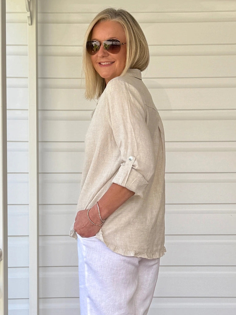 Ruffle Hem Linen Shirt - Natural