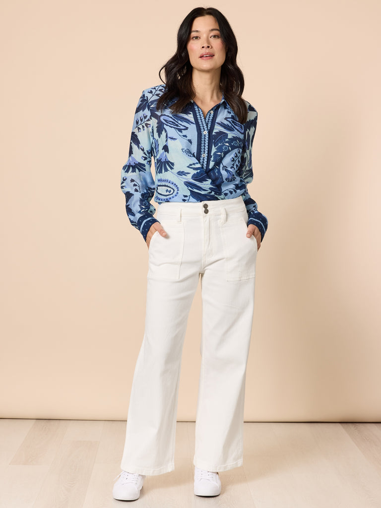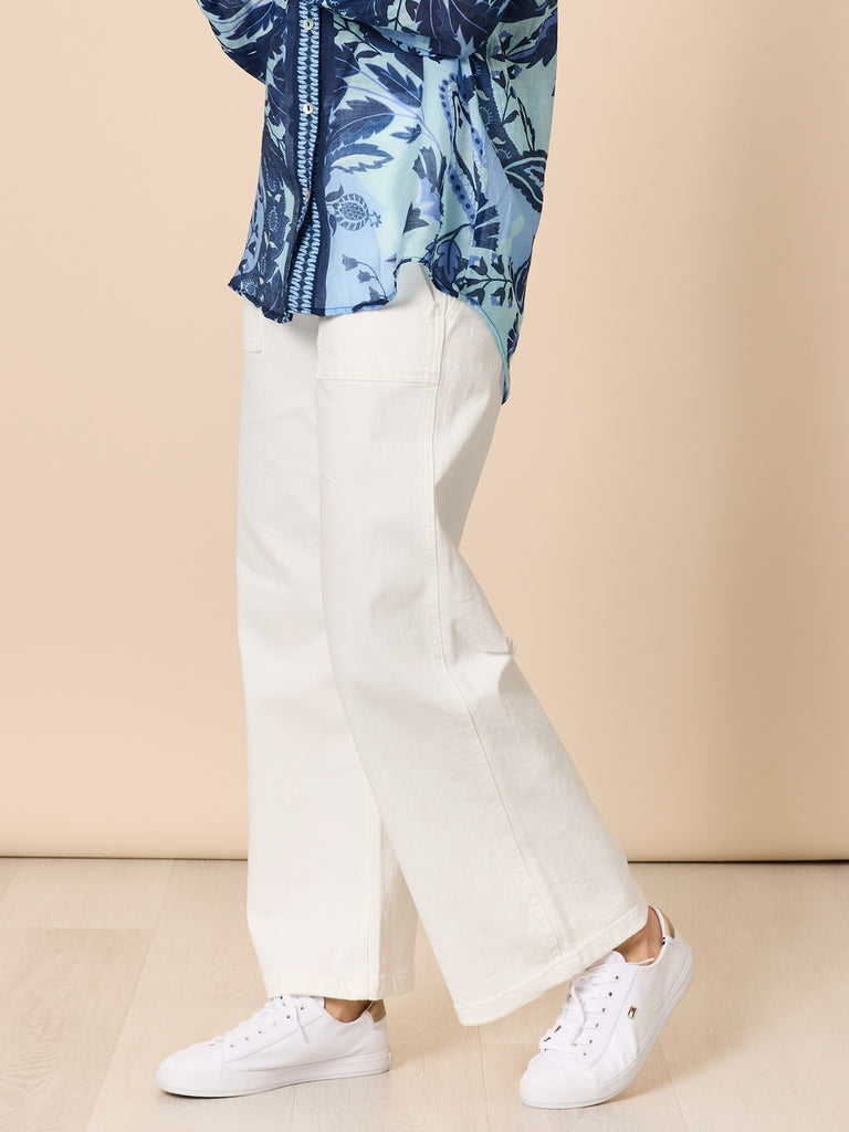 Hudson High Rise Wide Leg Jean - Ivory