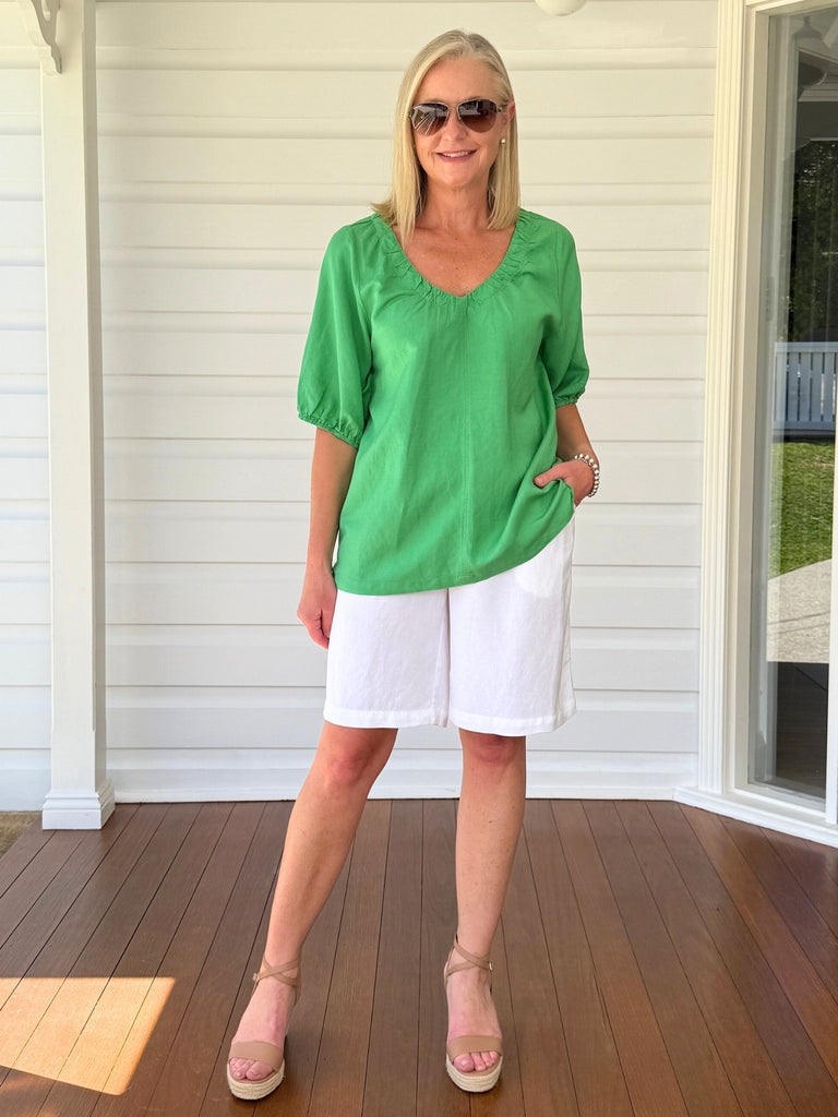 - Relaxed and effortlessly polished - the Lino V-Neck Top is crafted from a lightweight linen blend that’s perfect for warm days and easy layering.