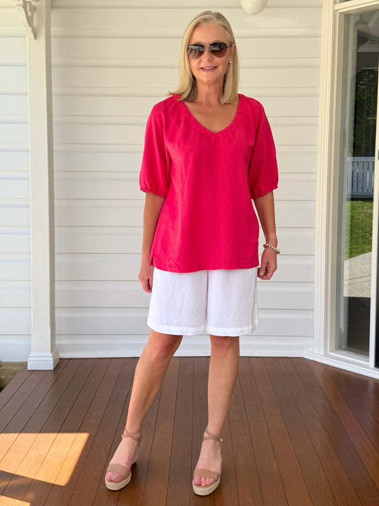- Relaxed and effortlessly polished - the Lino V-Neck Top is crafted from a lightweight linen blend that’s perfect for warm days and easy layering.