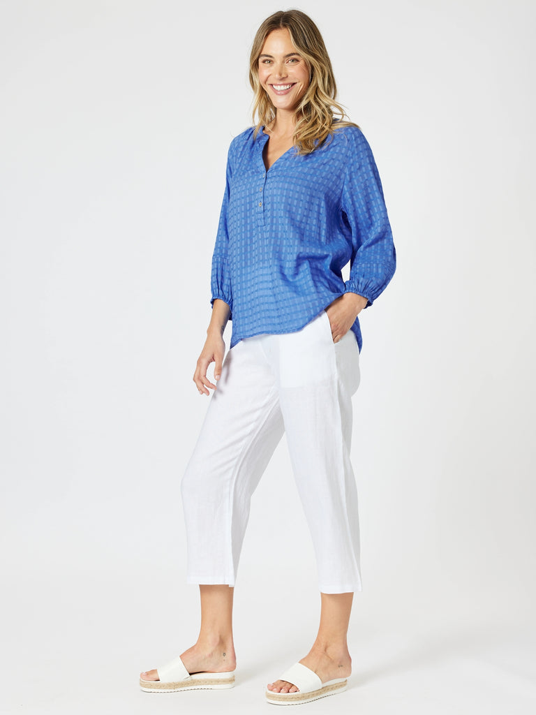 - Vibrant and lightweight, The Mykonos Check Sheer Top is a summer staple with a touch of texture.