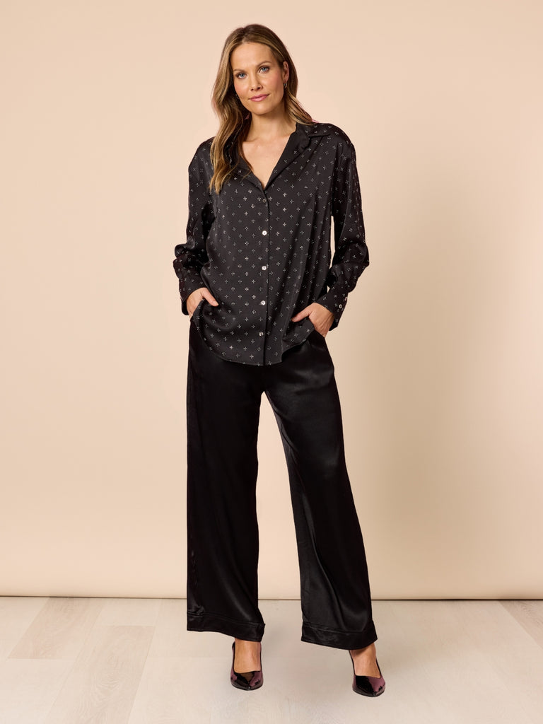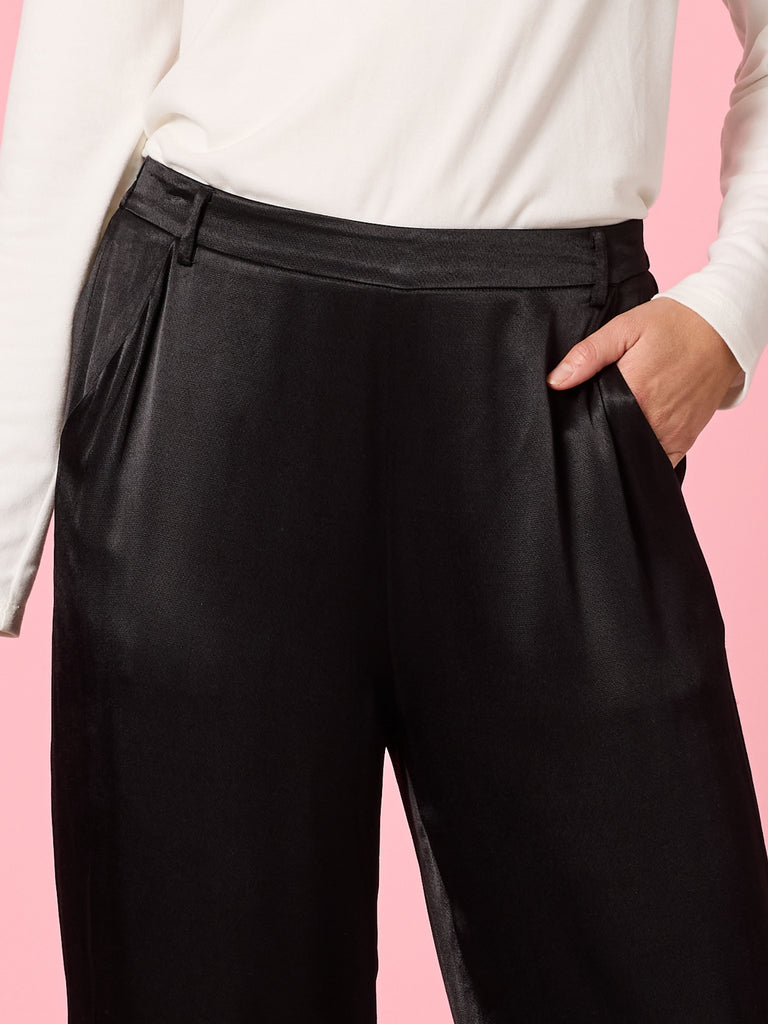 • Crafted from a soft satin fabric with a beautiful drape and subtle sheen, these pants offer a high-rise fit and a relaxed wide-leg silhouette that flatters every shape.