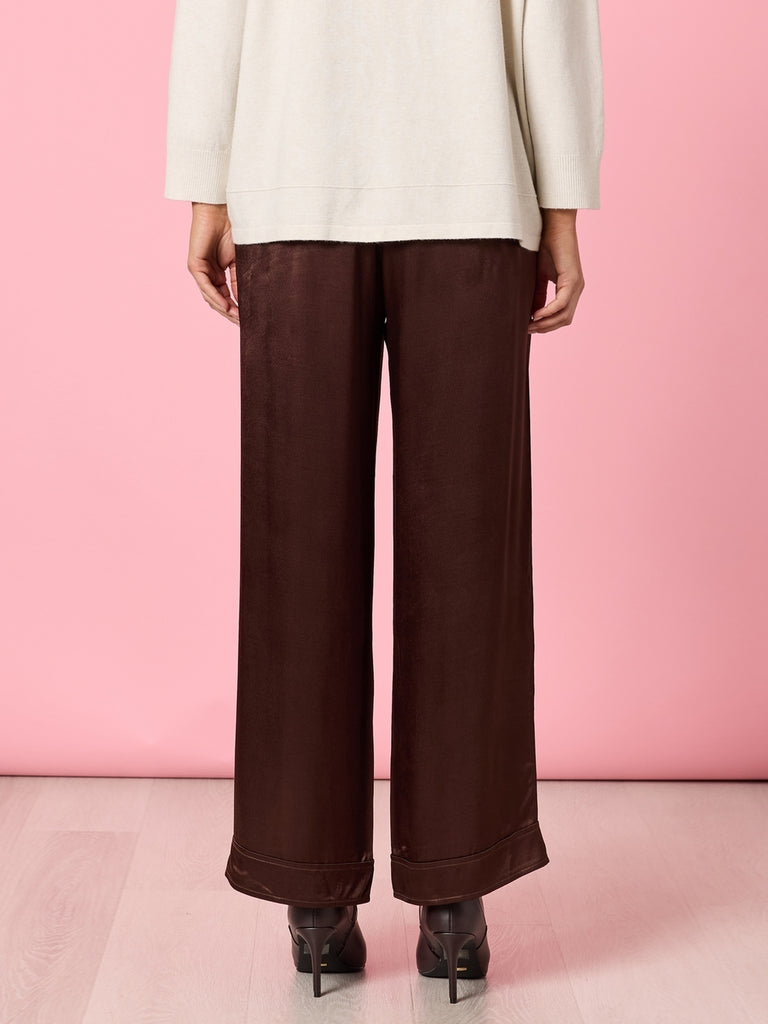• Crafted from a soft satin fabric with a beautiful drape and subtle sheen, these pants offer a high-rise fit and a relaxed wide-leg silhouette that flatters every shape.