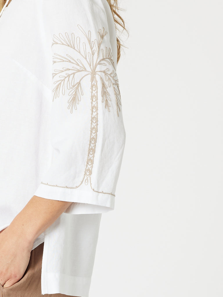- Breezy, stylish, and effortlessly versatile - the Palm Embroidered Lino Top is your go-to for relaxed yet polished dressing.