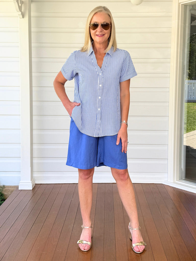 Piper Short Sleeve Shirt - Blue / White Stripe