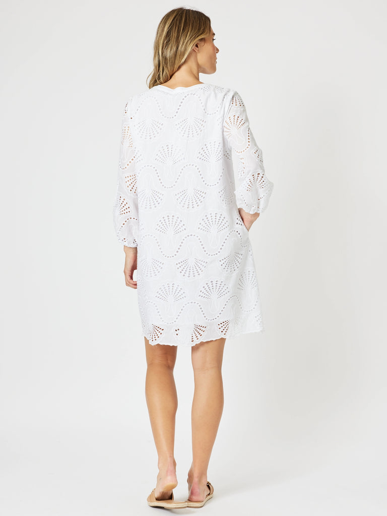 - Crafted from lightweight cotton, it features intricate shell inspired broderie anglaise detailing throughout and is fully lined for comfort and coverage.