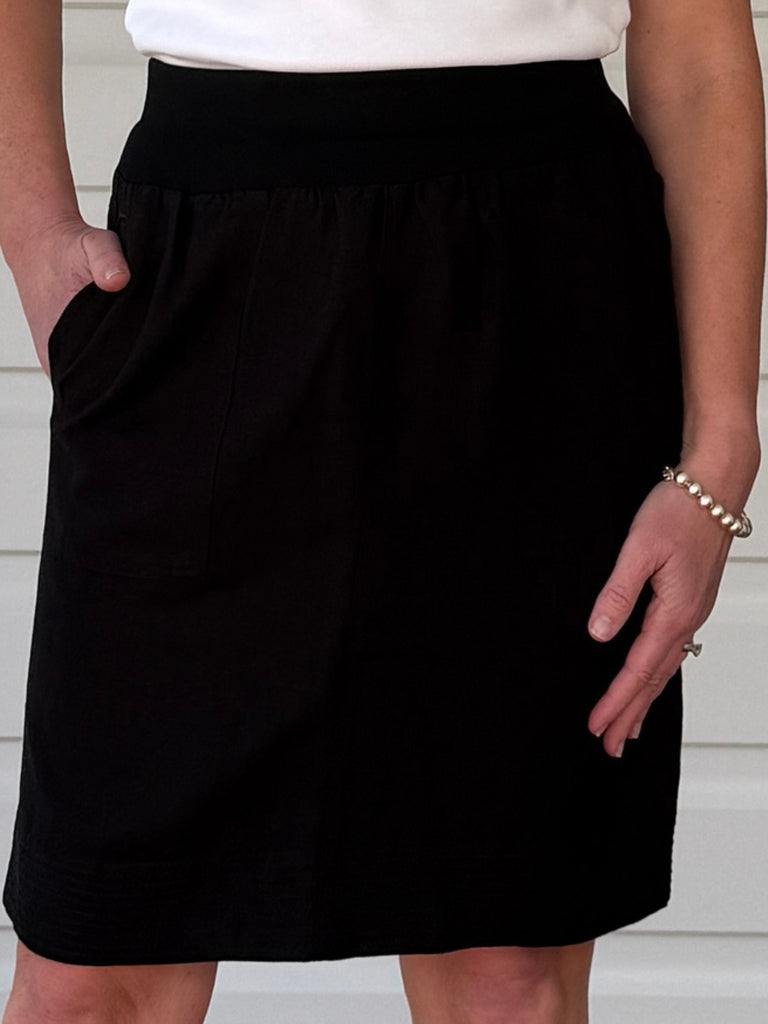 - The Stich Hem Skirt features a soft cotton rib waistband for all day comfort