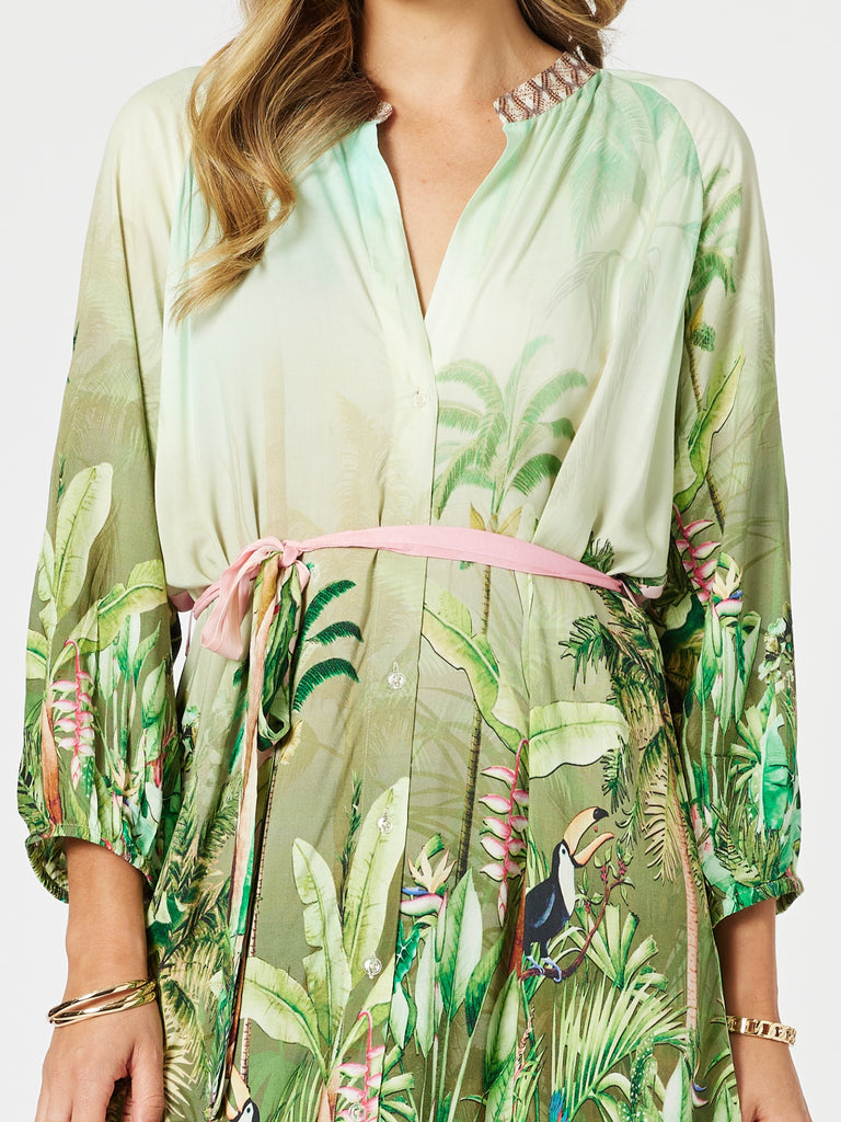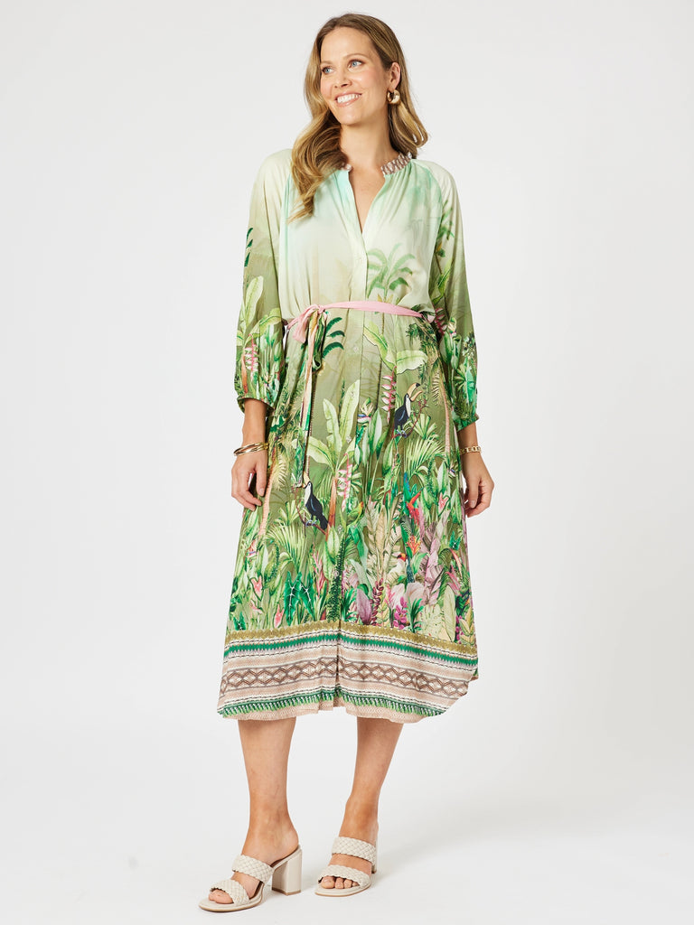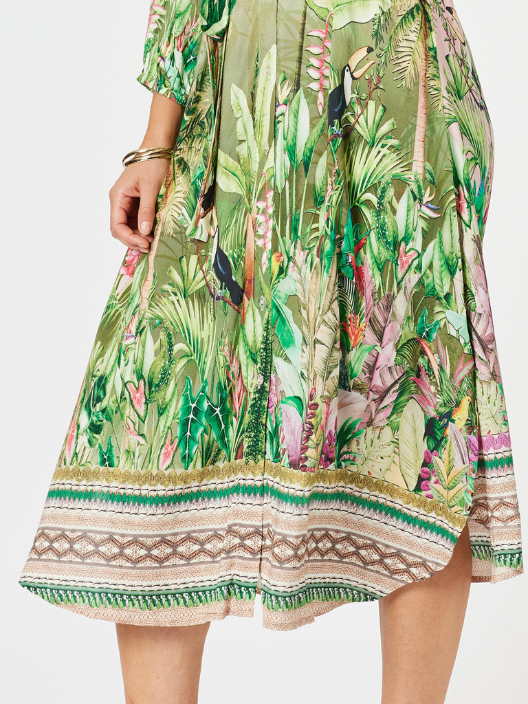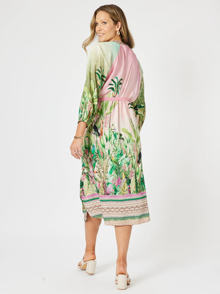 Toucan Midi Dress - Green Pink